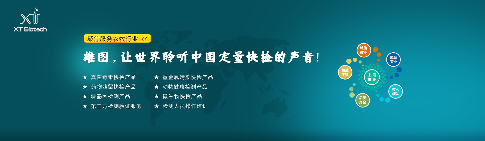 上海雄圖生物科技有限公司(以下簡稱“上海雄圖”)是專注為食品安全與動物健康領域內提供精準快速檢測解決方案的高新技術企業,自主開發的真菌毒素與藥物殘留?合?熒光免疫定量POCT檢測系統、重金屬快速定量檢測系統、非洲豬瘟病毒等動物疾病熒光定量PCR快速檢測系統等,主要用于糧油米面、飼料、肉蛋奶制品生產加工和畜禽水產養殖行業及其監管流通行業。公司在無錫建立了研發生產基地和第三方檢測服務平臺,結合市場需要不斷研發推出新的快檢產品和檢測服務...[詳情]